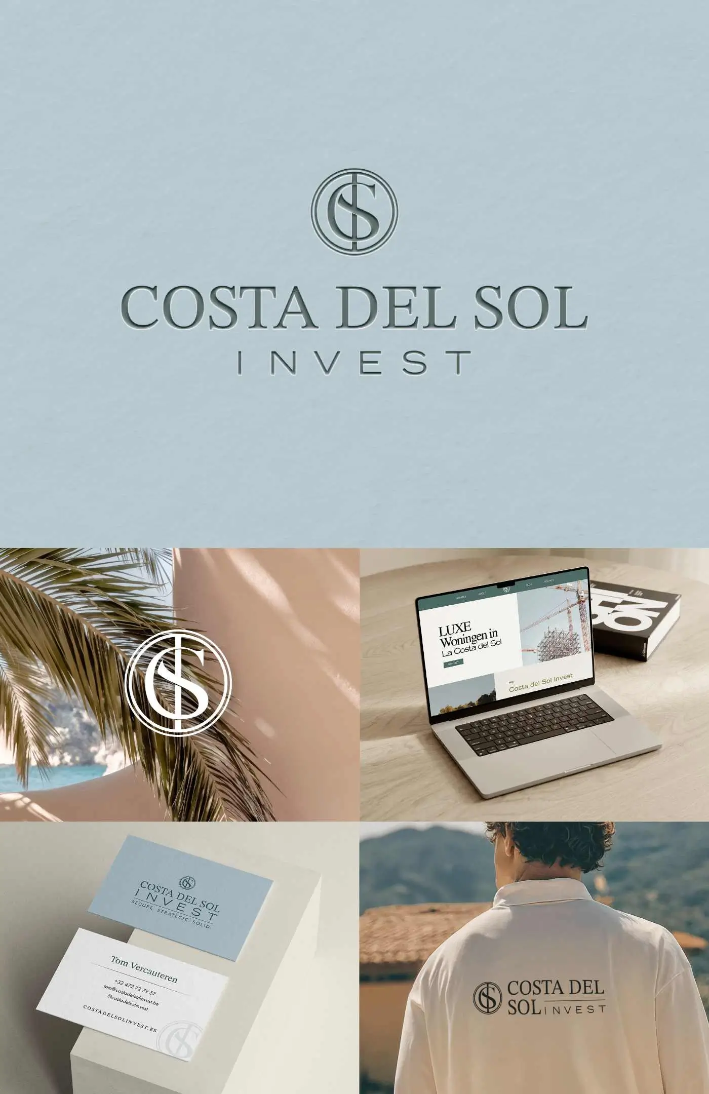 A complete brand identity for Costa del Sol Invest, designed to attract premium property investors along the Costa del Sol. The project includes a full logo system, strategic color palette, typography, custom icons, marketing collateral, and the foundation for a five-page website and ongoing brand content creation
